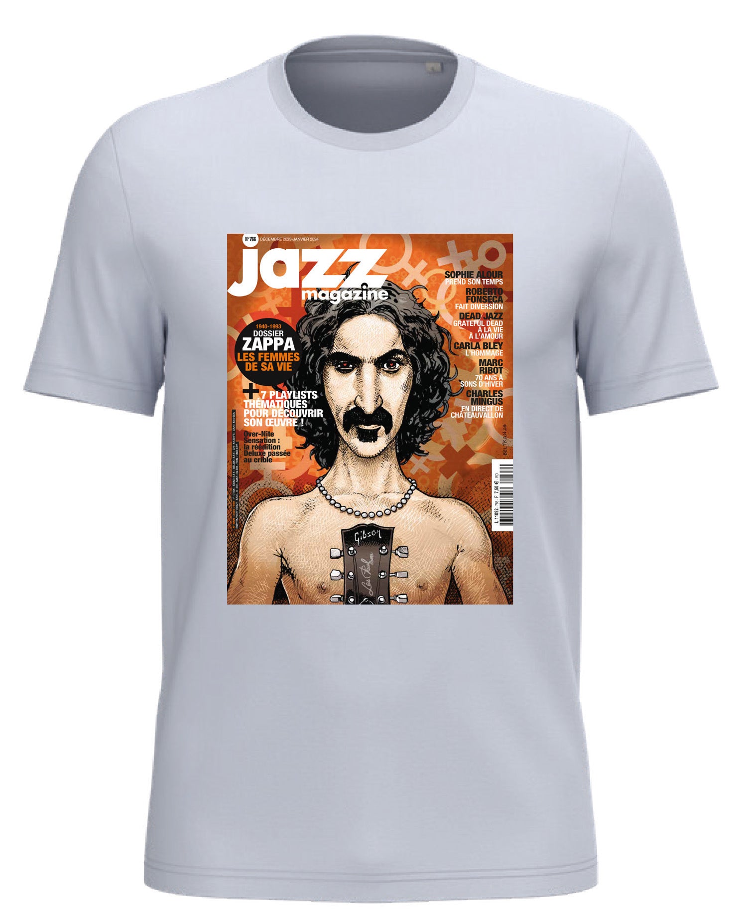 Tee-Shirt Frank Zappa dessiné par Fred Beltran pour la couverture du numéro 766 de décembre 2023.